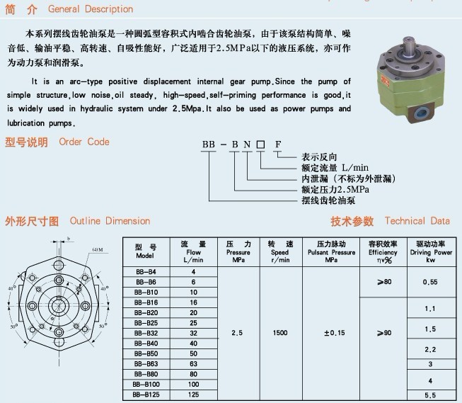 产品中心>>BB-B系列摆线齿轮油泵